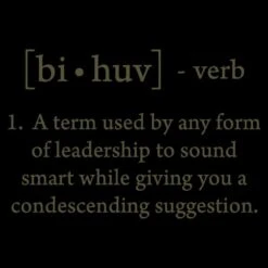 1) A term used by any form of leadership to sound smart while giving you a condescending suggestion.