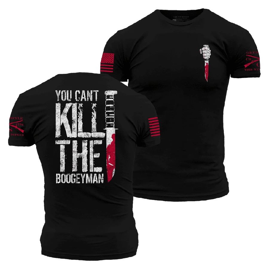 Dare to stand out this Halloween with the Boogeyman T-Shirt! This badass design features the Boogeyman, who always comes back on Halloween night to haunt the dreams of brave souls. You can’t kill him, but you can show him who’s boss with this killer t-shirt!