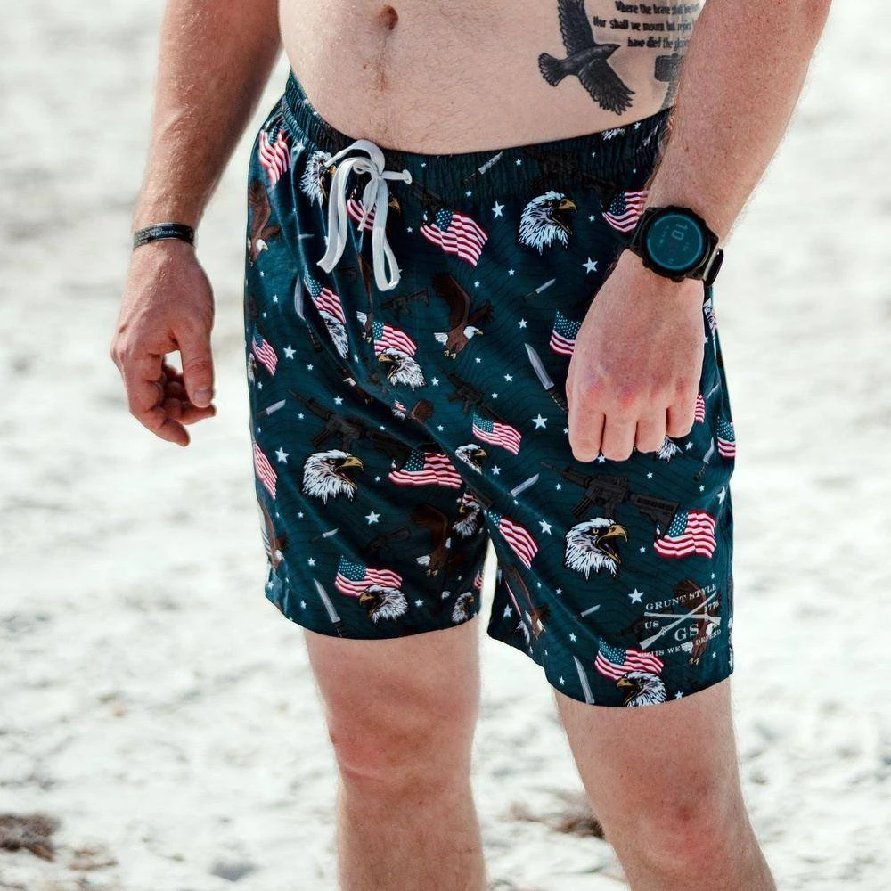 Grunt Style is proud to offer high quality, patterned board shorts for men and other patriotic clothing and apparel that is backed by our Beer Guarantee!