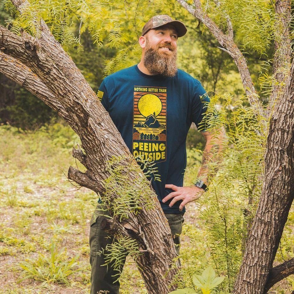 We all know someone who loves to spend hours outdoors. There is nothing quite like being out in the elements, but sometimes you just have to take a much-needed stop. Our navy vintage tee tells that nothing is better than peeing outside while showing off your love of nature and sense of humor. Don’t wait! Get your graphic t-shirt today!