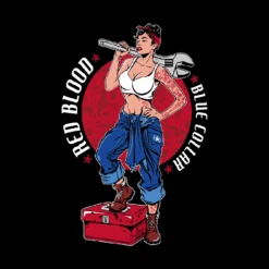 Show your support for the building block of America with the Red Blood Blue Collar™ T-Shirt! This tee is created from a combination of polyester and cotton fabric to guarantee comfort while on the job and long-lasting wear resistance. Featuring an iconic blue-collar pin up girl that celebrates the blue-collar badass that has made America what it is today. We’re not just a lifestyle, we’re a badass movement that honors the hard-working, hard-loving spirit of America’s grittiest heroes.
