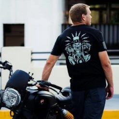 Hit the open road and Ride for Freedom in this Uncle Sam Freedom Rider T-Shirt. Featuring an undead Uncle Sam, this badass, patriotic shirt is your perfect companion for a wild adventure. Let freedom ring!