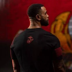 Honor the challenges faced and sacrifices made by USMC members with this inspirational T-shirt. Featuring phrases like “guts is enough” and “the first in, the last out”, you’ll feel the power of the Marine Corps every time you wear it. Show your pride with the USMC – First In T-Shirt!