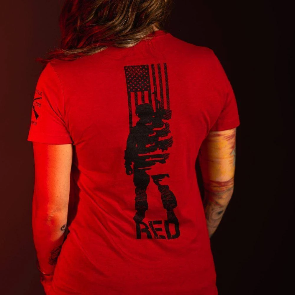 Our Women’s R.E.D. All Forces – Red Tees are crafted with the following details:
