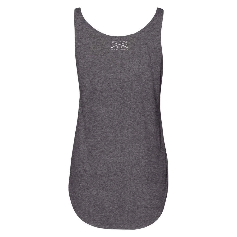 Grunt Style’s flowy tank tops for women offer a relaxed fit and all day comfort! This women’s graphic tank is great for any day outdoors and all weekend activities! Don’t miss out on ordering your Vintage American Women’s Charcoal Flowy Tank today!
