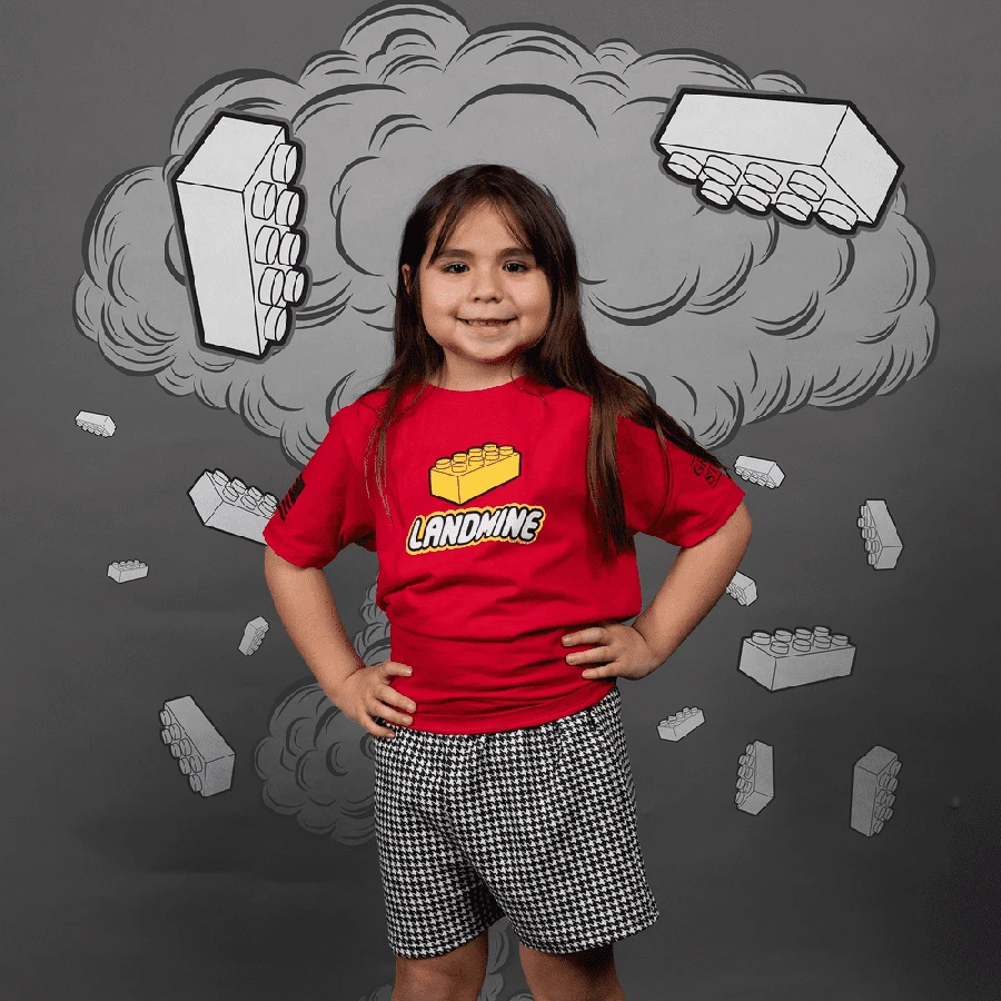 Keep parents on their toes and turn your living room into a warzone by scattering these indestructible pieces in places they would never expect! Nothing worse than going through a room filled with these little landmines. So get your Landmine graphic T-shirt today to make sure they watch their step!